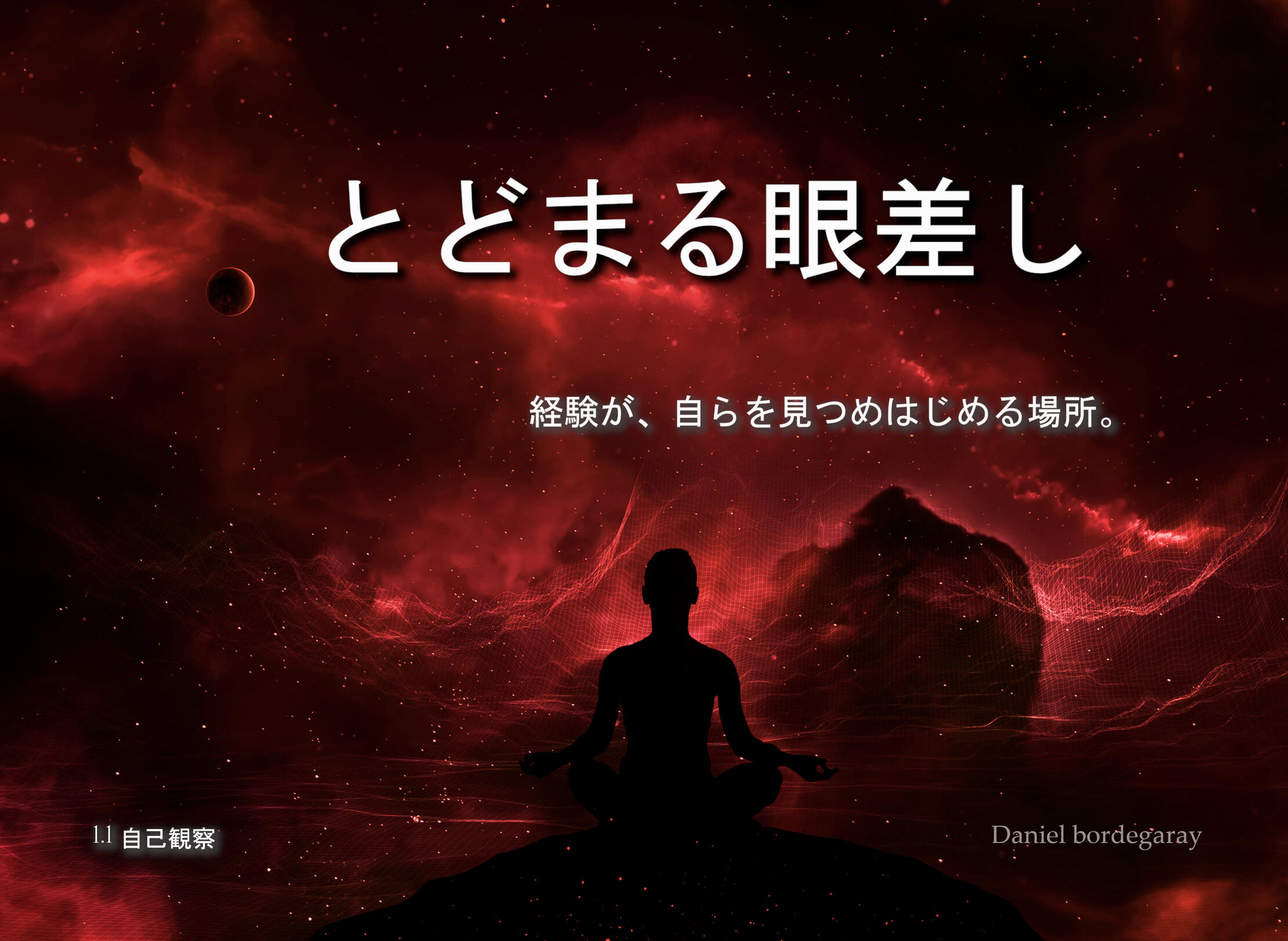 経験がみずからを見つめはじめる場所。なぜそうしたのか分からないまま行動したことが、何度あっただろうか。騒音の中で、焦りの中で、あるいは自動操縦のまま下した決断が、いくつあっただろうか。自分が本当にそこに在ることなく過ぎ去っていく時間が、どれほどあるだろうか。この本は、あなたの出発点だ。「とどまる眼差し」は、あなたを別の誰かに変えることを約束しない。それよりもはるかに力強いものを差し出す。裁くことなく、歪めることなく、自分自身を明晰に見る能力を。あなたに必要なのは変わることではなく、観察することだ。そして誠実に自分を観察することを学ぶとき、変容はおのずと訪れる。ここであなたは発見するだろう。自動操縦から抜け出し、自分の人生の意識的な主導権を取り戻す方法を。断罪なき自己観察、批判ではなく慈しみをもって自分を見つめることを。同じパターンを繰り返す理由と、それに支配される前に気づく方法を。在ることの技、反応からではなく意識から生きることを。あらゆる真の変容の土台、根源的な誠実さをもって自分を見ることを。これは誠実な鏡だ。立ち止まり、自分を見つめ、自分を認識するための招待だ。自分自身から気を逸らして生きることに疲れた人のために。速効的な技法ではなく、より深いものを求める人のために。在ること、明晰さ、そして真実を求める人のために。常にそこにあったが、かつて立ち止まって見たことのなかったものを見る準備ができているなら、この本はあなたのためにある。存在の地図シリーズ、第一巻。